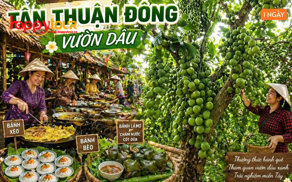 • Vé tham quan theo chương trình: Vườn dâu, đò qua chợ quê, Xẻo Quýt